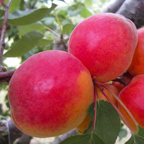 Редкий сорт с тёмной кожурой и сладкой мякотью. Вкус слива + абрикос. Устойчив к засухе и болезням. Устойчивый к засухе и заморозкам.